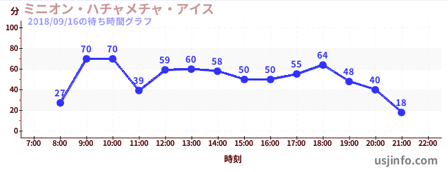 • ミニオン・ハチャメチャ・アイス$B$N(B2018年09月16日の待ち時間