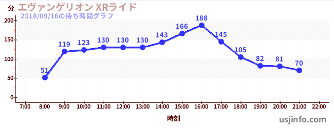 • エヴァンゲリオン XRライド$B$N(B2018年09月16日の待ち時間