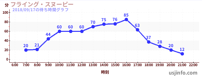 • フライング・スヌーピー$B$N(B2018年09月17日の待ち時間