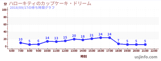 • ハローキティのカップケーキ・ドリーム$B$N(B2018年09月17日の待ち時間