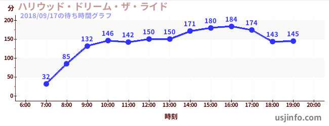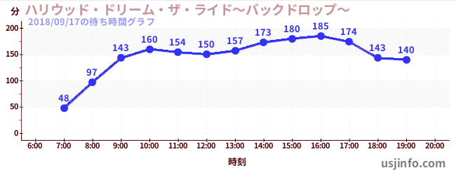 • ハリウッド・ドリーム・ザ・ライド$B$N(B2018年09月17日の待ち時間