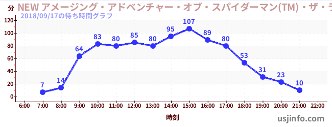 • NEW アメージング・アドベンチャー・オブ・スパイダーマン(TM)・ザ・ライド 4K3D$B$N(B2018年09月17日の待ち時間