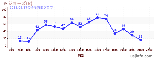 • ジョーズ(R)$B$N(B2018年09月17日の待ち時間