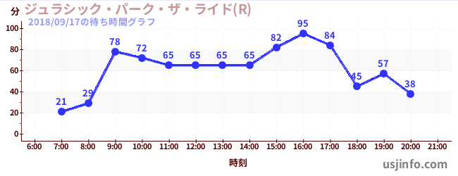 • ジュラシック・パーク・ザ・ライド(R)$B$N(B2018年09月17日の待ち時間