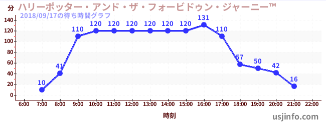 • ハリーポッター・アンド・ザ・フォービドゥン・ジャーニー™$B$N(B2018年09月17日の待ち時間