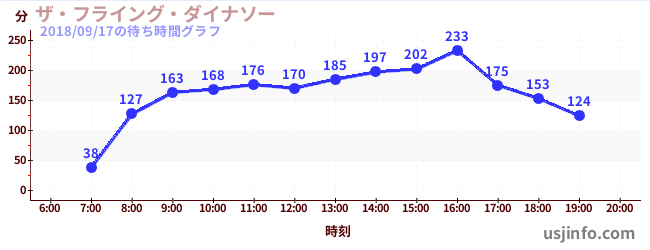 • ザ・フライング・ダイナソー$B$N(B2018年09月17日の待ち時間