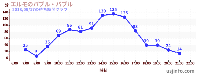 • エルモのバブル・バブル$B$N(B2018年09月17日の待ち時間
