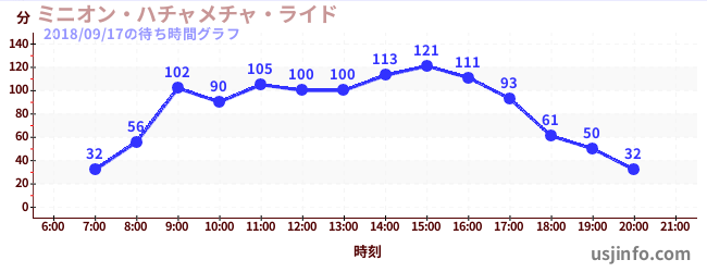 • ミニオン・ハチャメチャ・ライド$B$N(B2018年09月17日の待ち時間