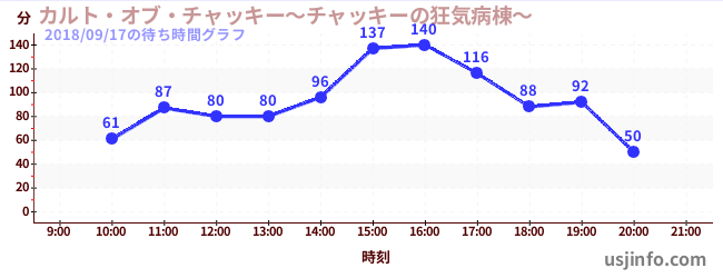 • カルト・オブ・チャッキー~チャッキーの狂気病棟~$B$N(B2018年09月17日の待ち時間