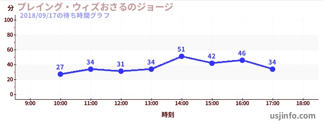 • プレイング・ウィズおさるのジョージ$B$N(B2018年09月17日の待ち時間