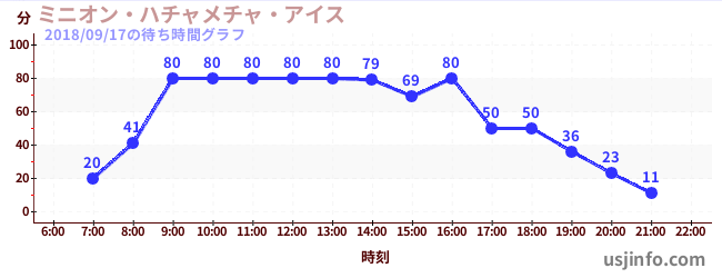 • ミニオン・ハチャメチャ・アイス$B$N(B2018年09月17日の待ち時間