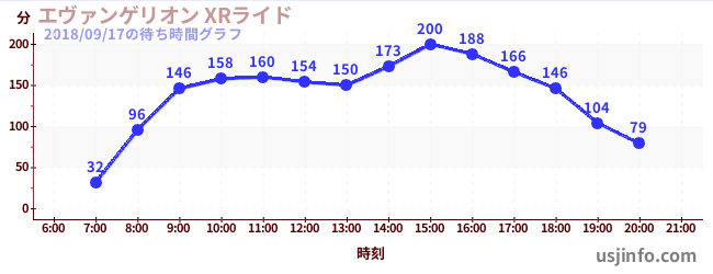 • エヴァンゲリオン XRライド$B$N(B2018年09月17日の待ち時間