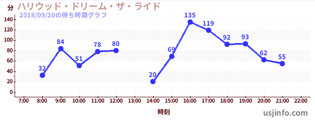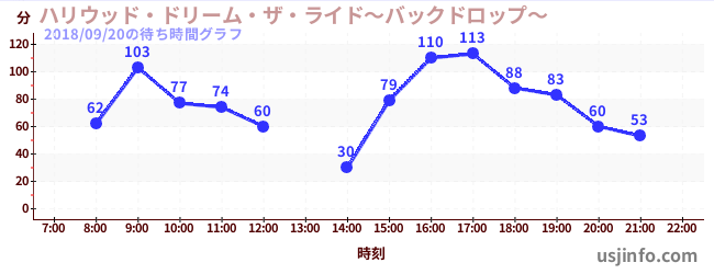 • ハリウッド・ドリーム・ザ・ライド$B$N(B2018年09月20日の待ち時間