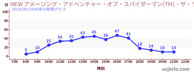 • NEW アメージング・アドベンチャー・オブ・スパイダーマン(TM)・ザ・ライド 4K3D$B$N(B2018年09月20日の待ち時間