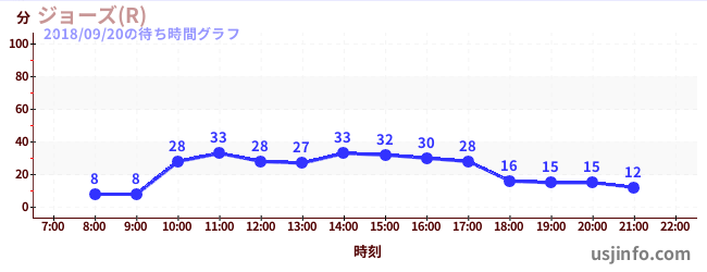 • ジョーズ(R)$B$N(B2018年09月20日の待ち時間