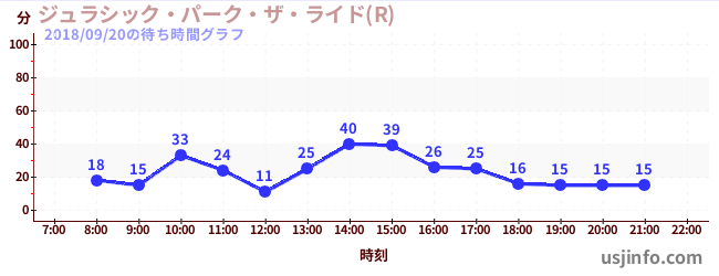 • ジュラシック・パーク・ザ・ライド(R)$B$N(B2018年09月20日の待ち時間