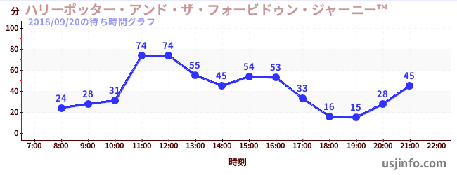 • ハリーポッター・アンド・ザ・フォービドゥン・ジャーニー™$B$N(B2018年09月20日の待ち時間