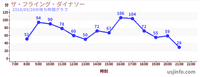 • ザ・フライング・ダイナソー$B$N(B2018年09月20日の待ち時間
