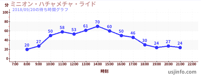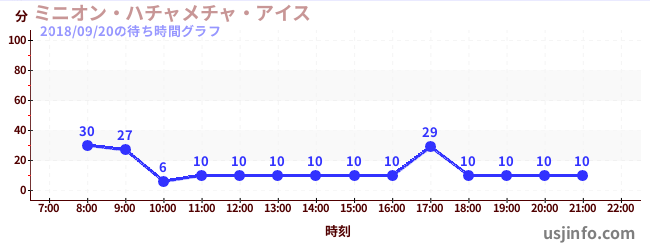 • ミニオン・ハチャメチャ・ライド$B$N(B2018年09月20日の待ち時間