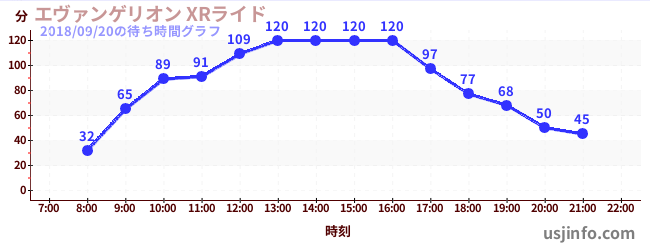• エヴァンゲリオン XRライド$B$N(B2018年09月20日の待ち時間