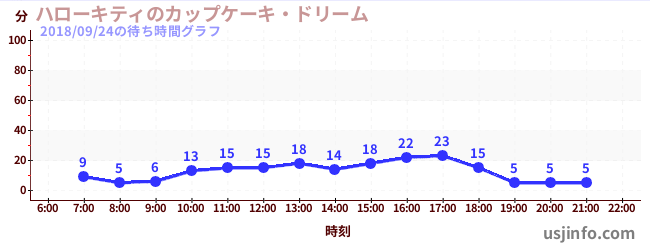 • ハローキティのカップケーキ・ドリーム$B$N(B2018年09月24日の待ち時間