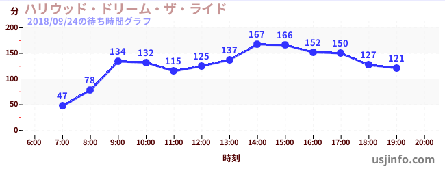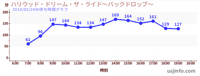 • ハリウッド・ドリーム・ザ・ライド$B$N(B2018年09月24日の待ち時間