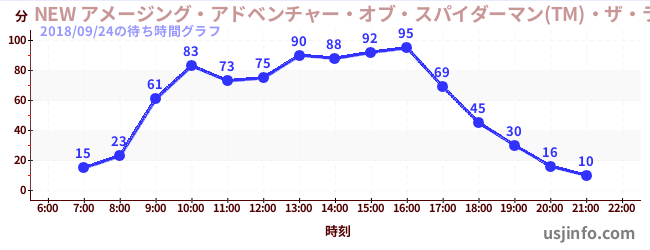 • NEW アメージング・アドベンチャー・オブ・スパイダーマン(TM)・ザ・ライド 4K3D$B$N(B2018年09月24日の待ち時間