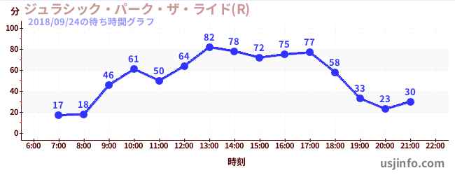 • ジュラシック・パーク・ザ・ライド(R)$B$N(B2018年09月24日の待ち時間
