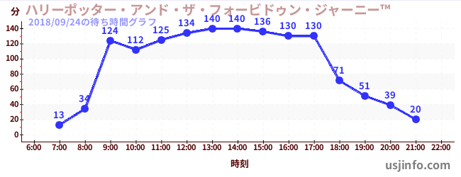 • ハリーポッター・アンド・ザ・フォービドゥン・ジャーニー™$B$N(B2018年09月24日の待ち時間