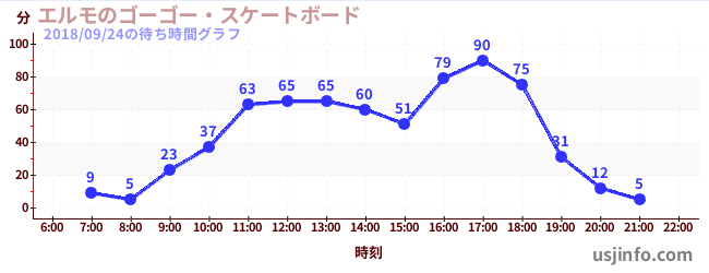 • エルモのゴーゴー・スケートボード$B$N(B2018年09月24日の待ち時間