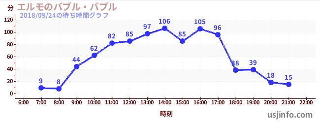 • エルモのバブル・バブル$B$N(B2018年09月24日の待ち時間