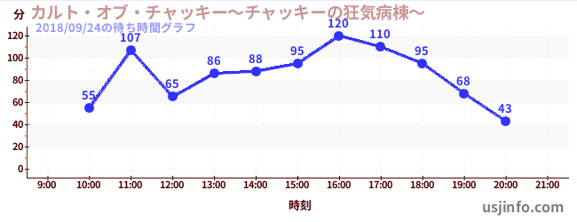 • カルト・オブ・チャッキー~チャッキーの狂気病棟~$B$N(B2018年09月24日の待ち時間