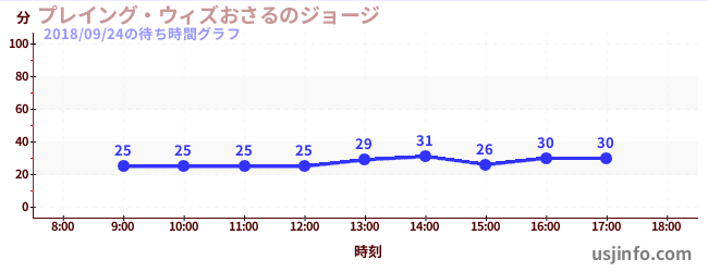 • プレイング・ウィズおさるのジョージ$B$N(B2018年09月24日の待ち時間