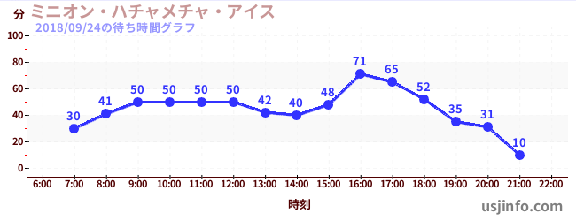 • ミニオン・ハチャメチャ・アイス$B$N(B2018年09月24日の待ち時間