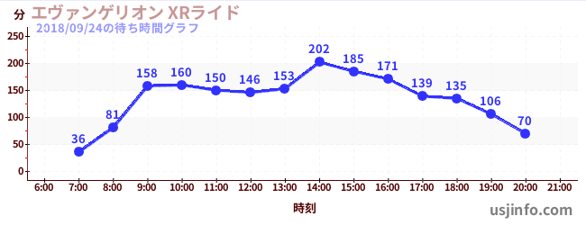 • エヴァンゲリオン XRライド$B$N(B2018年09月24日の待ち時間