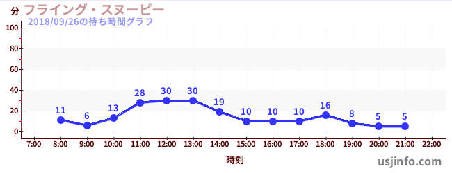 • フライング・スヌーピー$B$N(B2018年09月26日の待ち時間