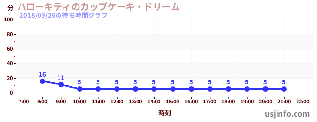 • ハローキティのカップケーキ・ドリーム$B$N(B2018年09月26日の待ち時間