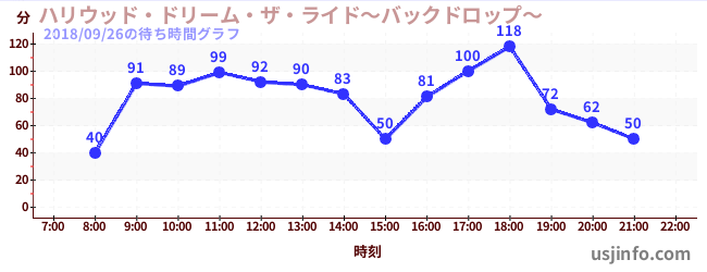 • ハリウッド・ドリーム・ザ・ライド〜バックドロップ〜$B$N(B2018年09月26日の待ち時間