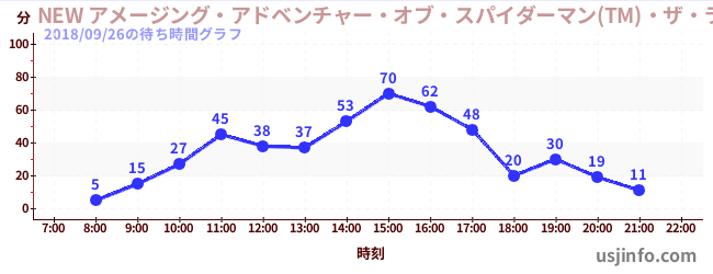 • NEW アメージング・アドベンチャー・オブ・スパイダーマン(TM)・ザ・ライド 4K3D$B$N(B2018年09月26日の待ち時間