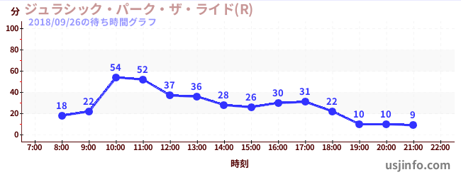 • ジュラシック・パーク・ザ・ライド(R)$B$N(B2018年09月26日の待ち時間
