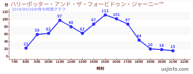 • ハリーポッター・アンド・ザ・フォービドゥン・ジャーニー™$B$N(B2018年09月26日の待ち時間