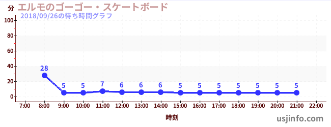 • エルモのゴーゴー・スケートボード$B$N(B2018年09月26日の待ち時間