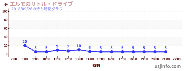 • エルモのリトル・ドライブ$B$N(B2018年09月26日の待ち時間
