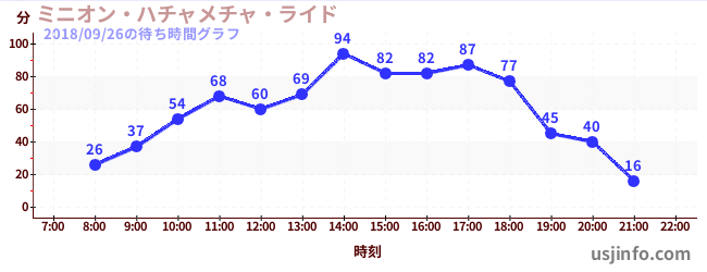 • ミニオン・ハチャメチャ・ライド$B$N(B2018年09月26日の待ち時間