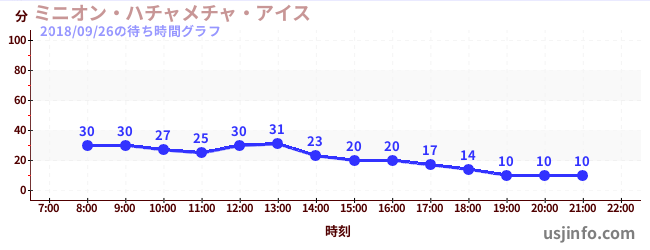 • ミニオン・ハチャメチャ・アイス$B$N(B2018年09月26日の待ち時間