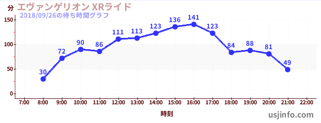 • エヴァンゲリオン XRライド$B$N(B2018年09月26日の待ち時間