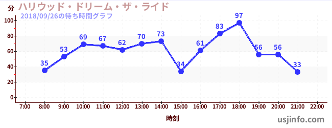 • ハリウッド・ドリーム・ザ・ライド$B$N(B2018年09月26日の待ち時間