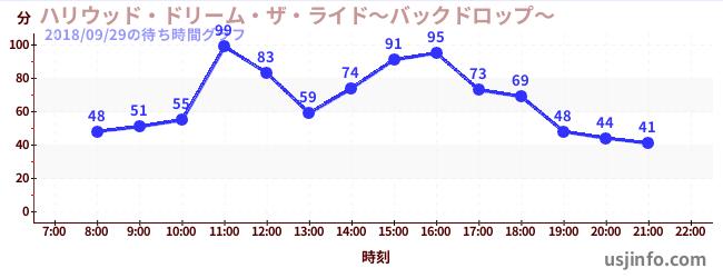 • ハリウッド・ドリーム・ザ・ライド〜バックドロップ〜$B$N(B2018年09月29日の待ち時間