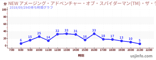 • NEW アメージング・アドベンチャー・オブ・スパイダーマン(TM)・ザ・ライド 4K3D$B$N(B2018年09月29日の待ち時間