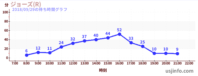 • ジョーズ(R)$B$N(B2018年09月29日の待ち時間